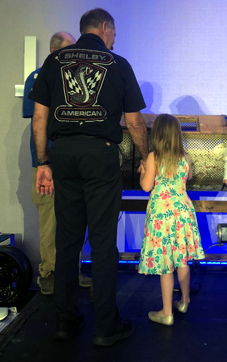 At the conclusion of the 2022 London Cobra Show, the winning ticket, for the beautiful Backdraft Racing ruby red with black stripes Cobra replica, was pulled from the ticket tumbler by the seven-year-old daughter of Gary Patterson, President of Shelby American, Inc. The winner was Tim T. from Newark, OH.